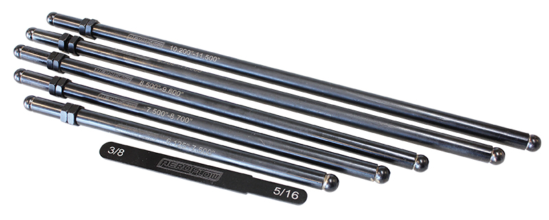 Aeroflow’s Push Rod Length Checking tool makes it easy and cost-effective to layout and establish the proper pushrod length during an engine rebuild. Correct pushrod length is critical in achieving proper valve train geometry. They are made from a5/16†(8mm) pushrod that is cut and threaded with over 1†(25.4mm) travel. The kit contains 5 individual length checkers and diameter checker.