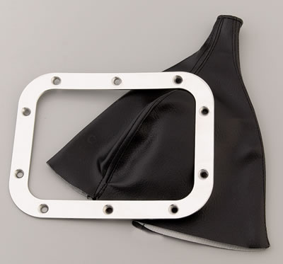 Lokar Shifter Boots are made of black Naugahyde. All sets include a boot, stainless or billet aluminum ring, and stainless screws. Stainless boot rings are available in polished stainless or black powder coat. Aluminum boot rings are available in brushed aluminum or black anodized finish.