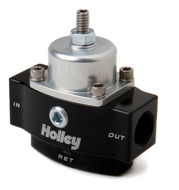 Holley Billet Fuel PressureRegulators are part of a complete line of fuel system products from Holley. They areprecision machined from 6061-T6 billet aluminium for strength and durability. They feature a black bright dip anodized body and a clear bright dip anodized top for corrosion resistance and good looks. The Holley 12-842 fuel pressure regulator features 3/8″ NPT in/out ports and a 3/8 NPT return port.