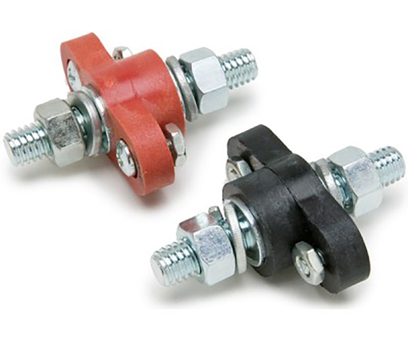 This kit includes one Positive (red) and one Negative (black) terminal block with 3/8″ studs that allows for the connection of battery cables through a bulkhead. A safe and convenient way to create attaching points for cables anywhere in the vehicle, such as the trunk or the firewall.