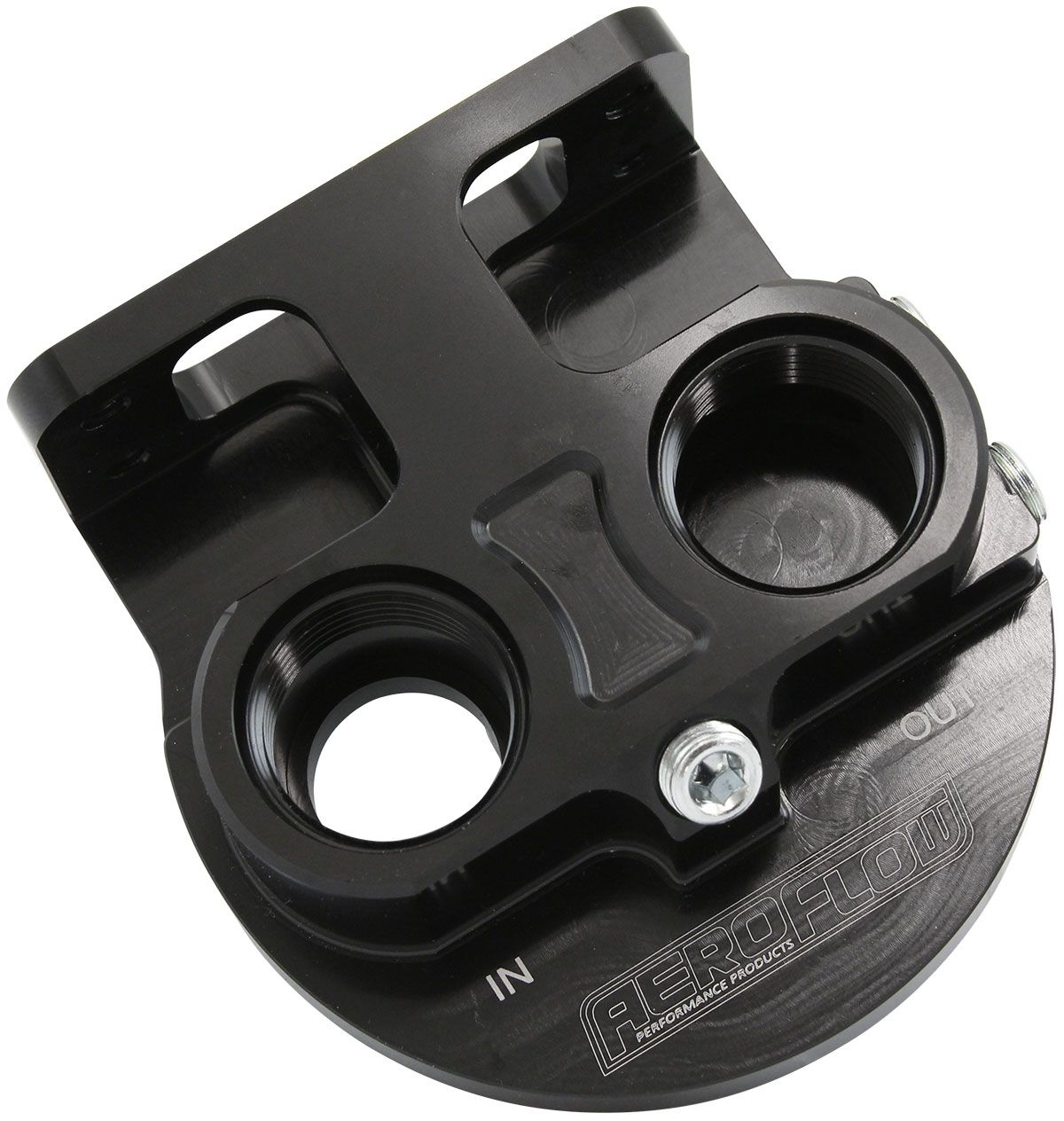 Move your oil filter to new location with Aeroflow Performance universal Billet Remote Oil Filter head. This is great for mounting an engine oil filter away from your engine, to make oil filter changes easier or where space is limited in the engine bay. Two labelled inlet and outlet -12 ORB ports are provided for plumbing the engine oil to and from the oil filter remote mount. The main body is made from billet 6061 aluminium, then anodized black for great looks and corrosion resistance. Integrated one piece bracket which can be used to make installation easier in various universal applications. Featuring 3 x 1/8†NPT female ports for various auxiliary accessories such as turbo feed, sensors and more.