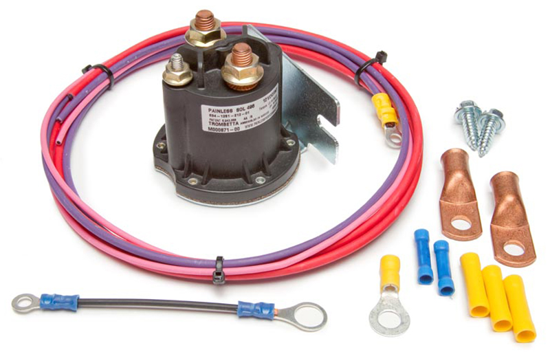 This kit allows for the starter solenoid to be placed any where you need to in order to make maintenance easier, clean up an inner fender or just replace a factory starting circuit.