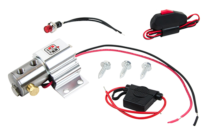 Kit includes solenoid valve, snap-action switch, indicator light, 4-amp fuse, mounting screws and installation instructions