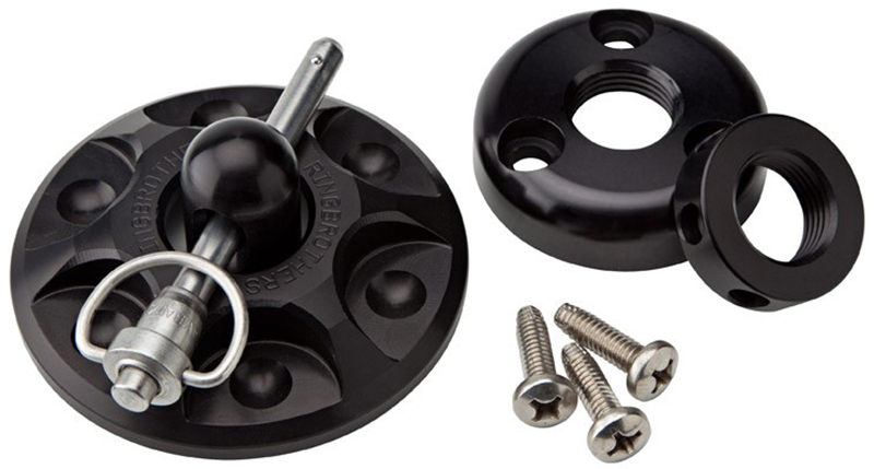 Pin your hood in secure style with the Ringbrothers Round Billet Hood Pin Kit! These high-quality, machined billet aluminum hood pins feature stainless steel locking pins that adjust to the hood angle for a superior fit and secure closure. The hood pin bases bolt into the core support with minor modification. Installation hardware and instructions are included. All hood pin kits are available in natural finish and black anodized. Sold as a pair.