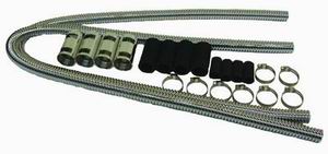 Chrome 44″ stainless steel “heater” hose kit with polished aluminium caps.