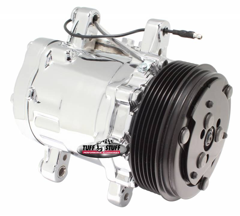 Multiple sizes of Sanden style compressors that utilizeR12 or R134A refrigerant depending upon part number. Dedicated-fit compressors replace factory OEM units. Compressors include a 2V-groove, 4-groove or 6-groove pulley. Available finishes include chrome plated, polished aluminum, painted or as cast. Made from 100% new components, these areNEW, not remanufactured A/C compressors.