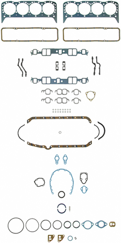 These full engine gasket kits include all gaskets and seals required for a complete engine rebuild including head gaskets, intake and exhaust manifold gaskets, oil pan gaskets and all engine seals and ancillary gaskets.