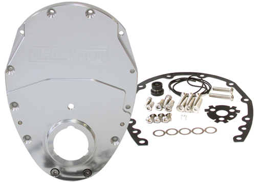 Aeroflow performance products has developed a 2 piece billet timing cover CNC machined from 6061-T6 Billet aluminium. Includes gaskets, seals, cam locking plate, roller cam button and bolt kit.