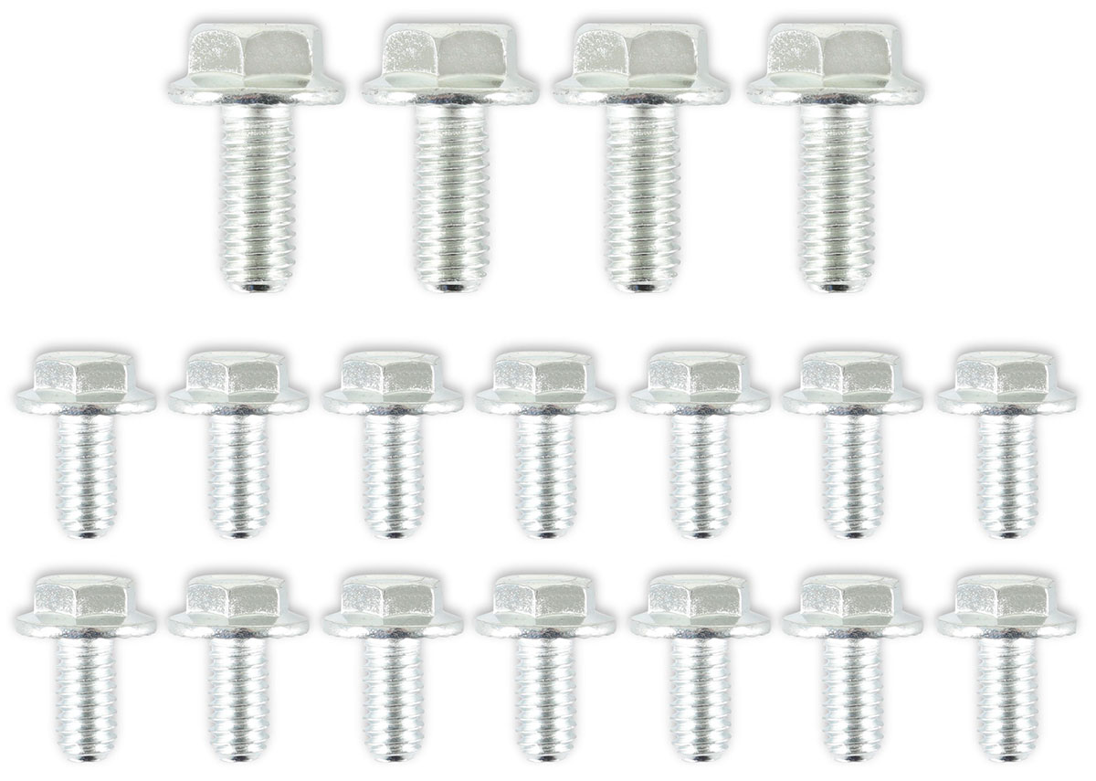 The special smaller-than standard hex head is ideal for tight spaces. Because of the hex flange head design, it will not fall back into the socket wrench, allowing for easier installation. Special under head serrations prevent loosening and the wide flange head distributes uniform clamping pressure for an Ultra gasket seal. Bolts are zinc plated, Grade 5.