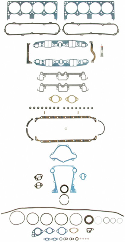 These full engine gasket kits include all gaskets and seals required for a complete engine rebuild including head gaskets, intake and exhaust manifold gaskets, oil pan gaskets and all engine seals and ancillary gaskets.