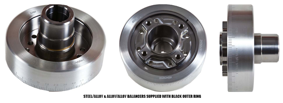 Steel Inner Hub / Steel Outer Ring, for Mild Street, Strip performance engines that offers increased harmonic bsorption over stock units. 360 degreed outer rings. Similar weight to factory cast units but with the safety of an encapsulated outer ring. RPM range 8500. Available in External or Neutral balance. Weight from 3 to 5kg’s