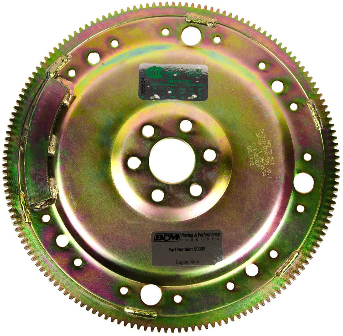 As performance levels increase, an O.E. style flexplate just won’t cut it and a stronger option is a necessity to prevent transmission and/or converter failure. B&M has you covered with our high-performance flexplate designed for 1982-95 Ford, Lincoln, and Mercury (externally balanced) 302ci V8 engines with the 50.0-ounce imbalance and C4 transmission. Features include high tensile strength steel construction to resist elongation and cracking, a 10.5-inch bolt pattern, and 157 tooth ring gear. The assembly is then Zinc plated and treated with a Chromate Conversion Coating for added corrosion resistance and durability. B&M flexplates are ideal for hot rods, street cars, tow vehicles, or other vehicles needing the added protection and toughness that B&M has been delivering since 1953.