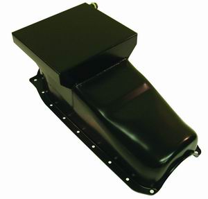 Made to fit SBC 283-350 engines with 1-piece rear main and passenger side dipsticks. Our drag race oil pans are made from high quality stamped steel and features a welded 8.25″ deep sump for extra oil capacity. These 7 quart capacity pans feature 1 x trap doors, crank scraper and new windage tray for superior oil control under severe conditions. Kits include new drain plug and bolt on reinforcement rails. *PICKUP, OIL PAN GASKET AND MOUNTING HARDWARE SOLD SEPARATELY. WILL NOT FIT 1962-67 CHEVY II, CHEVELLE WITH REAR STEER OR VEGA/MONZA.