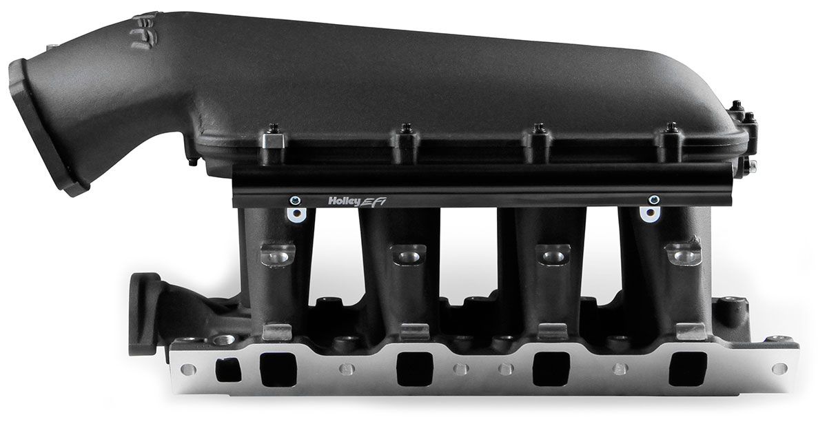 The EFI Hi-Ram manifold line has a new addition for the 8.2″ SBF Ford application. This manifold comes with a 105MM LS throttlebody flange top. The runner length and tapered cross section design will perform well for a wide range of engine combinations. The engineering team also redesigned the water crossoverpassage to allow room for distributor phasing. Aggressive, bold, race-bred styling will make bad intentions clear for drag race, muscle car, marine, off-road, sandrails, pulling trucks, track, street-rod applications and more!