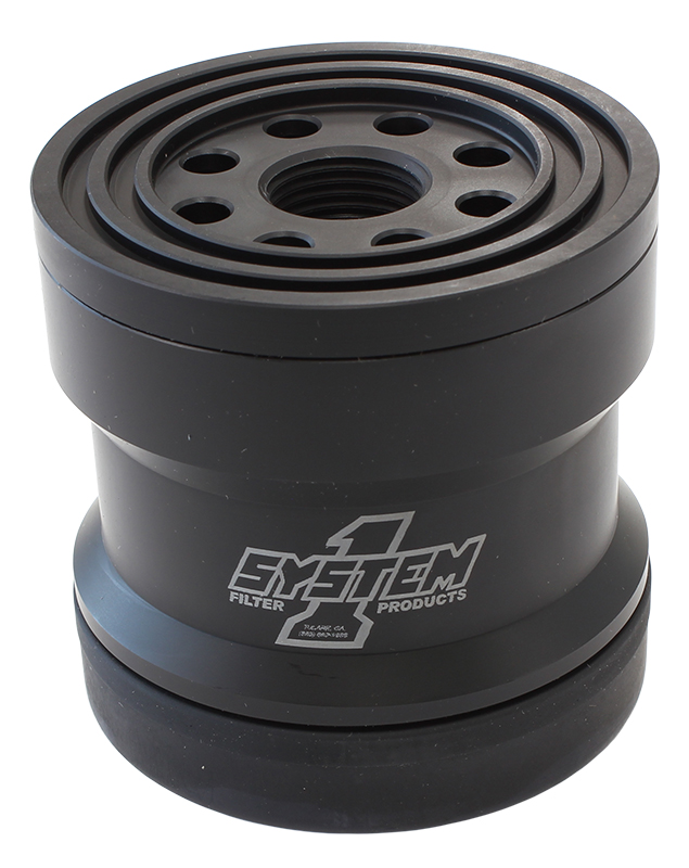 Spin-on billet oil filter – Black anodized. 3-3/4″ long x 3-3/4″ diameter. With 45 Micron stainless steel element and metric thread inserts.