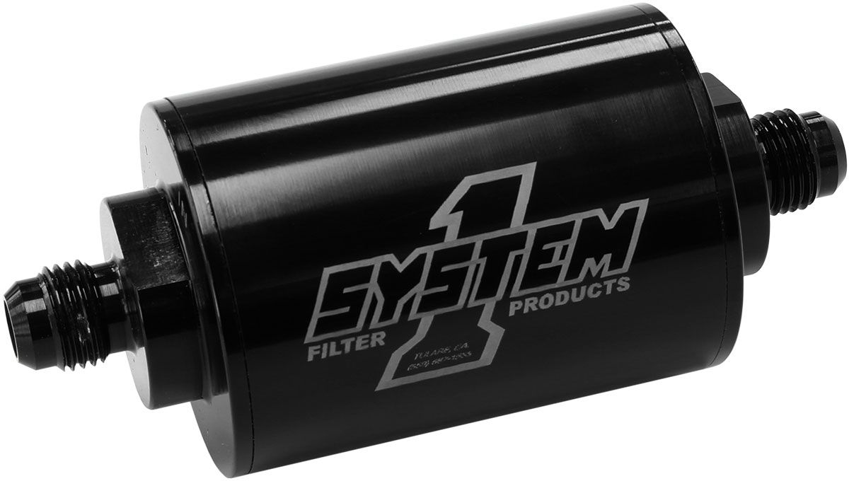SHORT BLACK INLINE BILLET FUELFILTER -6 END 4″LNG 2″DI 35MIC