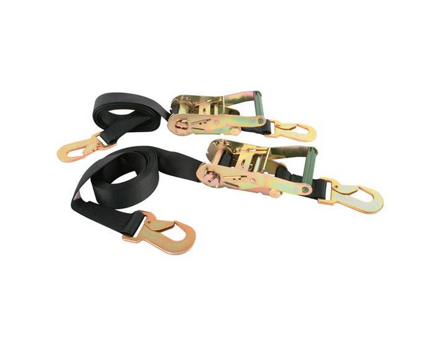 2″ nylon webbing featuring a ratcheting buckle with integral hook and snap hook at opposite end