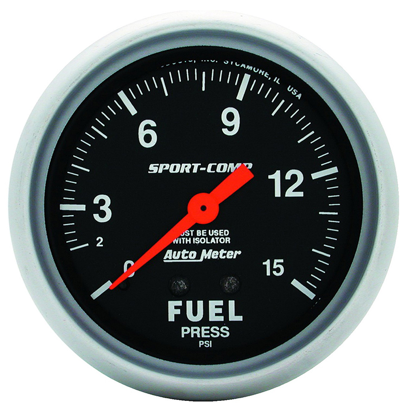 SPORT-COMP 2-5/8″ FUEL PRESS. 0-15PSI, MECH WITH ISOLATOR