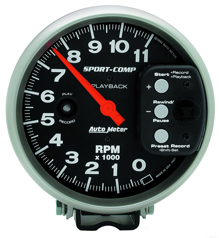 SPORT-COMP 5″ TACHO 11,000RPM PEDESTAL MOUNT, PLAYBACK