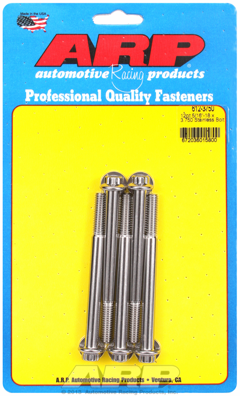 Now you can use premium quality ARP stainless steel or chrome moly fasteners to install most anything on a car, boat or trailer. ARP’s specially alloyed stainless steel bolts and heat-treated 8740 chrome moly bolts with black oxide finish are nominally rated at 180,000 psi tensile strength to provide a substantial extra margin of safety over Grade 8 hardware. What’s more, you can’t beat the gorgeous looks of ARP’s specially polished stainless steel fasteners, and their ability to resist rust. They’re truly maintenance free!. Stainless Steel & Chrome Moly Bolts Available in Standard Sizes From #10 to 1/2″ and Metric Sizes From M6 to M12 With Underhead Lengths Ranging From 1/2″ to 6″. Hex or 12-Pt. Heads. Packaged In Convenient 5-Pack Cards.
