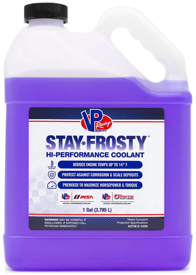 Stay Frosty is a proprietary VP Racing Fuels coolant, formulated for high-performance engines that require additional protection from overheating and minimal freeze protection.