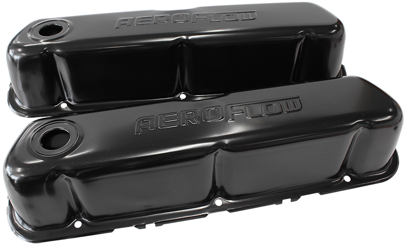STEEL VALVE COVERS, SBF BLACK WITH AEROFLOW LOGO