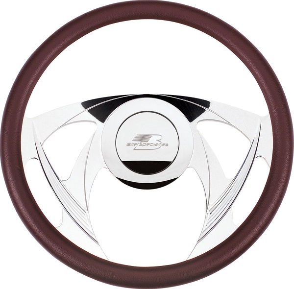 Each Billet Specialties steering wheel is 14 inches in diameter (Some designs also available in 15-1/2″ diamiter) and on the back side of each steering wheel are milled and polished finger notches added for comfort. The front half of each Billet Specialties Half Wrap steering wheel is covered with your choice of leather, simulated carbon fiber or simulated burl wood. Countersunk screws hold the half wrap to the wheel from the backside (a half wrap is required for use with Billet Specialties steering wheels). Because Billet Specialties’ steering wheel components are sold separately, you can mix and match your choice of Steering Wheel, Half Wrap, Horn Button, and Adapter to best fit your needs. Solid billet steering wheels also feature milled and polished finger notches but do not use a half wrap. Order horn button, adapter and leather ring separately.