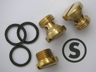 Three brass plugs from under the float bowl with gaskets.