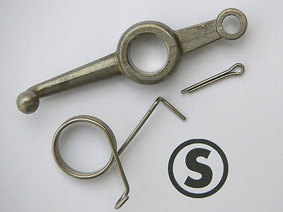 Connects the accelerator pump rod to the actual pump. A beautiful investment cast stainless steel piece, with new spring and a cotter pin for the pump.