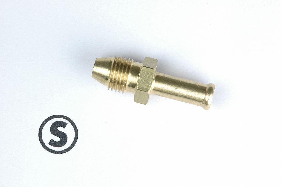 The only brass hose end available with the correct 18 degree seat for Stromberg inlet fittings (original or S-jet).