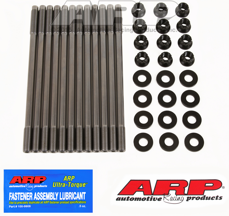 It is for good reason that virtually every top professional engine builder relies on ARP Pro Series head studs for their all-out competition powerplants. Simply stated, there’s not a better stud setup on the market today. For openers, ARP only uses premium grade 8740 alloy and a proprietary ARP2000 alloy that are rated far superior to “aircraft” quality alloy steels. Secondly, each stud is placed vertically into special racks and precisely heat-treated to 190,000 psi for the 8740 material and 220,000 psi for the ARP2000 material. This procedure ensures complete heat penetration and the results are far superior to those lesser quality studs from other manufacturers who just dump pieces in a basket and hope for the best. Following heat-treat, each stud is centerless ground to make it as close to perfectly concentric as possible. This procedure involves about ten very slight cuts and results in an exceptionally straight part. It’s important to note that lesser quality studs are not even centerless ground – the material is thread rolled in bar stock form (mostly before heat-treat, when the material is easier to machine). Because ARP studs are manufactured to such exacting tolerances, you will note that gaskets and cylinder heads literally glide into position and are perfectly aligned – something that won’t happen with inferior quality head studs. ARP studs are thread rolled after heat-treat, which gives them about 2000% (that’s twenty times) better fatigue strength than those studs that are threaded prior to heat-treat (a very common industry practice). It costs a lot more to do it this way, because it’s tough on tooling, but the results are well worth the extra effort. You will also note that ARP offers specially undercut studs for several engines. This procedure (done only to the shorter studs) more equalizes the “stretch” of both studs, which makes for a more consistent clamping force – and one that compensates for head gasket compression when the cylinder heads are installed. This helps prevent blown head gaskets, and assures optimum engine sealing! Premium quality 8740 and ARP2000 head stud kits are available for most domestic and import applications. You won’t find a better quality stud on the market from any other source. Look for ARP stamped on each stud as your assurance of quality. Clearly, they are the best on the market today, and the favorite of leading professional engine builders in all forms of racing.