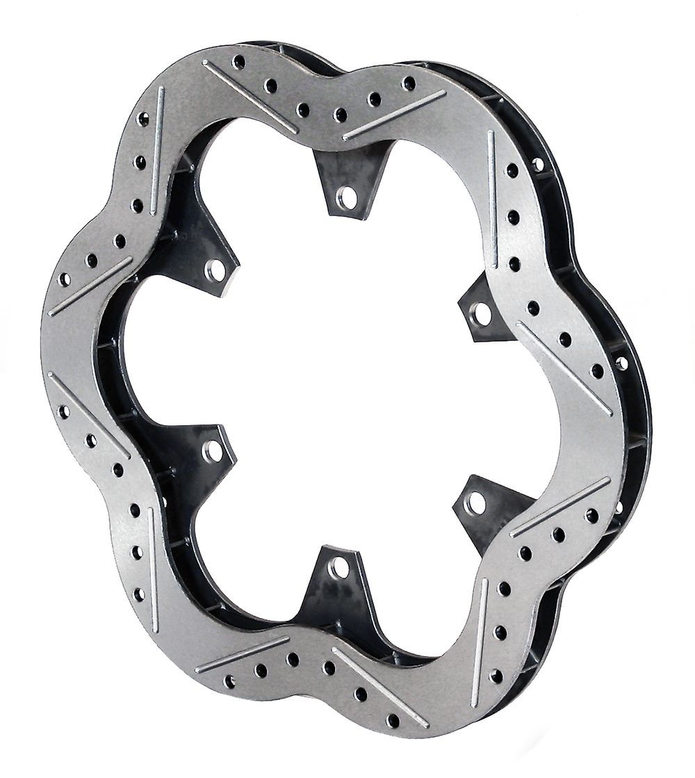 Super Alloy Steel 10.50″ x .780″ Vented Rotors are one of Sprint racing’s lightest .750″ to .810″ thickness class rotor at a weight of only 3.20 pounds. Wilwood’s proprietary Super Alloy Steel greatly enhances the durability and lifespan of this rotor over comparable lightweight steel or iron rotors. A Drilled, slotted, and scalloped design with 24 cooling vanes provides excellent high temperature stability, rapid heat dissipation, and consistent performance from the brake pads.