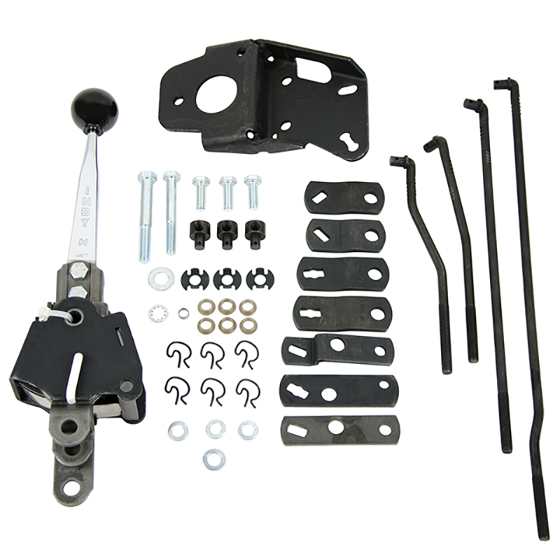 Hurst/Indy 4-Speed Shifter Kits are designed to be used on most popular 4-speed transmissions and a wide variety of cars. Applications are determined by transmissions and an exclusive engineered mounting design, making them adaptable to many popular passenger car floor pans.