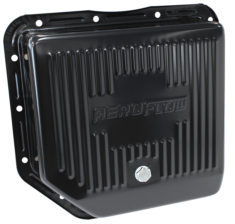 These Aeroflow transmissionpans add a little zing to the undercarriage of any vehicle. The included drain plug makes transmission service a snap. These pans are thicker than stock so you don’t have to worry about leaky pan rails. Available in two great finishes; chrome plated and black electrolysis.