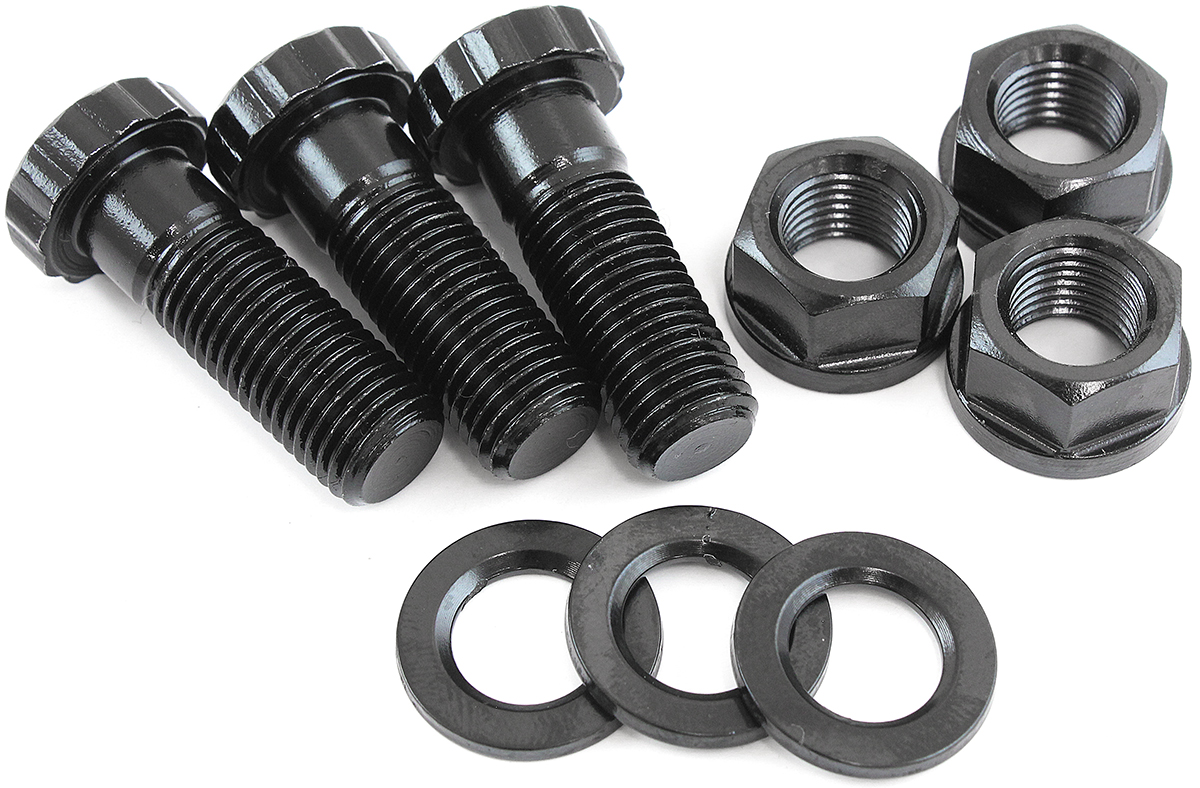 These bolts and nuts are manufactured from aircraft quality 8740 high tensile strength chromoly steel and cold-forged to ensure molecular integrity within the stud. Meaning these are rated up to 190,000 psi making them stronger than Grade 8 and OEM fasteners. All bolts feature a 12-point head and hardened washers for an even load distribution and accurate torque readings.