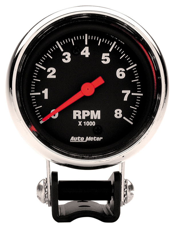 TRAD CHROME 2-5/8″ TACHOMETER 8,000RPM, WITH MOUNTING CUP