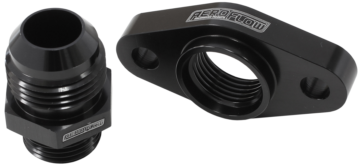 -12 AN male with 50.8mm hole centres to suit turbos with 50.8mm bolt centres on core.