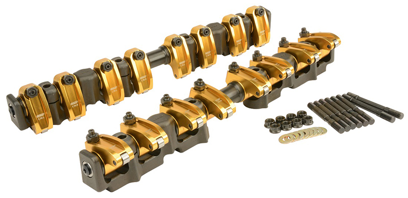 Featuring high-lift capabilities in a lightweight design, the systemis designed exclusively for use in high-performance streetand race engines. Steel standsoffer extra shaft support for strength and rigidity, while shims are adjustable left and right for intake runner clearance. The rockers featurea 1.76 ratio.