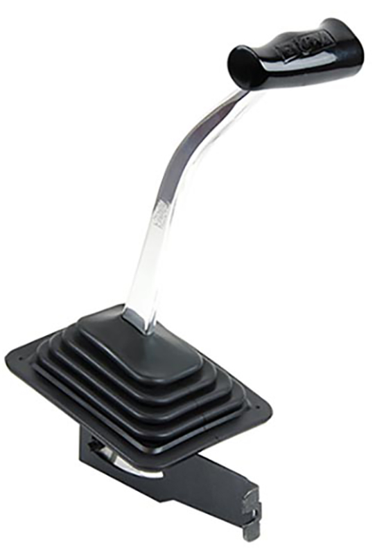 Want to turn your column shifter into a floor shifter and still retain that performance ‘flavour’? The Unimatic shifter is just the ticket! It looks identical to a manual 4-speed shifter and, because of it’s cable operated design, can be installed easily. Similar to B&M top line shifters, it includes a neutral safety switch and 5′ cable. Dimension measures 12.72″ high.