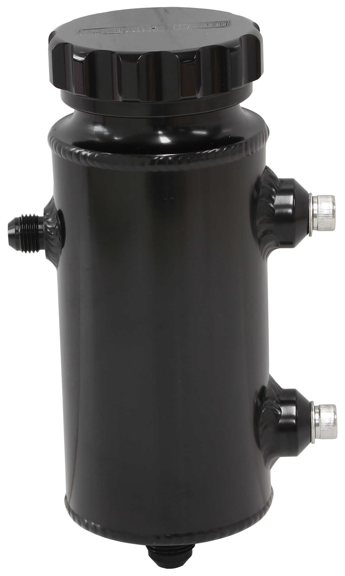 Each tank features a 50mm (2″) billet cap and can hold 650ml (22oz) of fluid. M8 mounting bungs are on each tank for mounting with a -8AN male feed on the bottom and a -6AN male return fitting on the side.