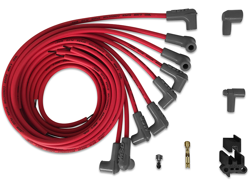 The MSD 8.5mm Super Conductor is the ultimate performance wire! Its extremely low-resistance combined with the ability to suppress Electro Magnetic Interference is a combination that defies the common laws of physics. Less resistance means more energy is going to make it to the spark plug to ignite the air/fuel mixture. The Super Conductor uses a copper alloy conductor resulting in less than 50 ohms per foot of wire! T his rgy possible makes it to the spark plug. This combination is encased in a heavy duty sleeve that will withstand abrasion and high temperatures. Cap off each end with our Dual Crimp Terminals and you have th