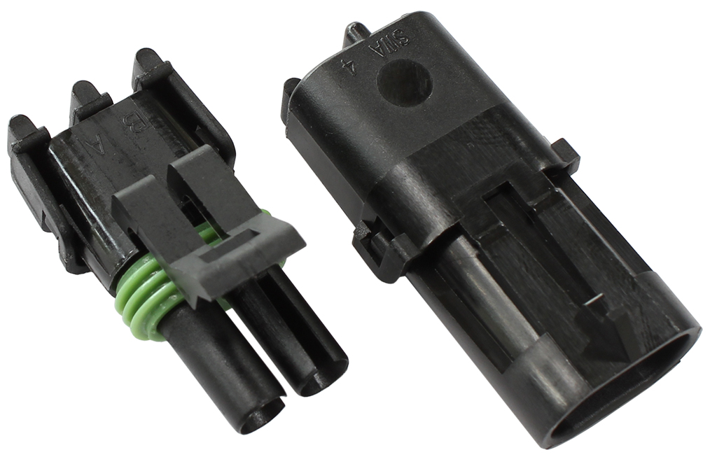 A real Weatherpack connection to protect against dirt, water, chemicals, vibration and temperature range of -40 degree C to 120 degrees C. Positive lock connectors allow you to hear the click for correctly joined connectors. Each terminal has its own tower to eliminate shorting and each tower handles 20 amp.