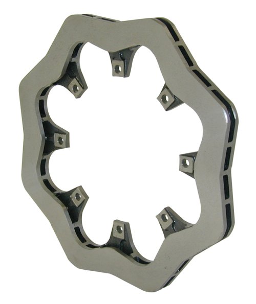 ULS Series Scalloped Rotors feature a fully machined scallop configuration that provides the highest degree of weight reduction on a vented straight vane iron rotor. Scallop machining will remove as much as three pounds, or nearly 33% of the rotor mass. The vented castings provide increased cooling capacity over machined steel plate rotors, with improved structural durability over drilled rotor designs. Wilwood’s ULS scalloped iron rotors provides effective lightweight options for sprints, late models, modifieds, and other competition applications that race in low to medium temperature ranges. NOT for street use